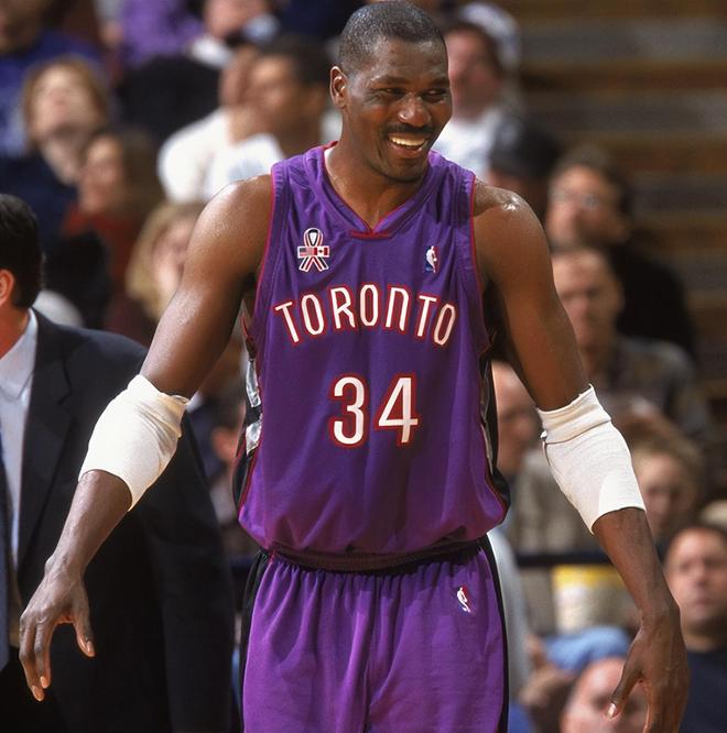 然后,就是九十年代的四大中锋之首,和尤因竞争了一辈子的“大梦”哈基姆·奥拉朱旺,同样在生涯的晚年,宣布离开了自己效力多年的火箭队。不过和尤因不同的是,大梦的离开更多还是自己主动选择,时间回到00-01赛季,这一年的大梦虽然也已经英雄迟暮,但场均还是有11.9分、7.4个篮板的贡献。