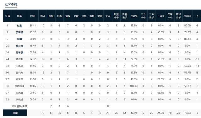 辽宁男篮打得确实不好,全队只有2人得分上双,奥利弗拿到16分7篮板,付豪10分7篮板2抢断。王岚钦从国家队回来状态真不好,4投1中,只拿到3分2篮板4助攻,正负值-14,全队倒数第一。