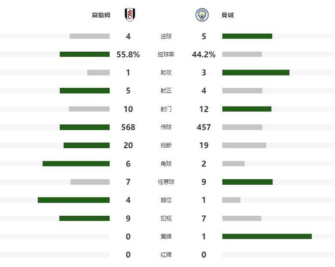 第54分钟杀疯了的曼城,再次攻破富勒姆的球门,表现活跃的多库,前场抢断后带球内切,随后起脚兜射远角建功,比分被进一步拉大到了5-1,虽然富勒姆没有放弃,靠着伊沃比的进球,丘库埃泽的梅开二度连入3球,帮助富勒姆将比分追至4-5,但无力改变主场输球的结局。
