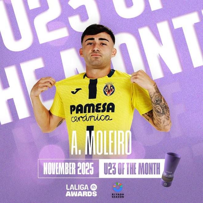 北京时间12月2日,西甲官方宣布,比利亚雷亚尔前锋莫莱罗当选联赛11月最佳U23球员,球员成功蝉联该奖项。