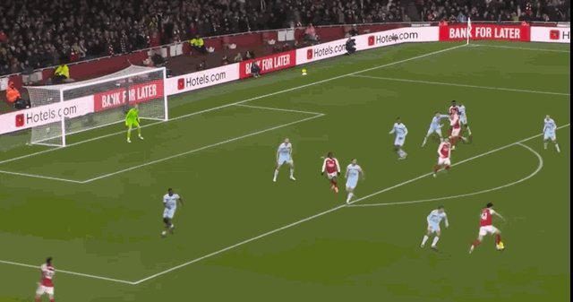 第89分钟,卡拉菲奥里扣过一人后右脚射门被扑出,萨卡的补射没有发上力,被门将没收。