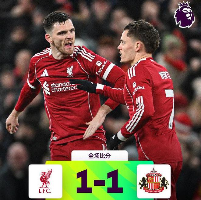 上半场,利物浦控球率62%占优,8次射门3次打正,创造1次破门良机没有把握住,桑德兰5次射门3次打正,双方均未破门得分。直到下半场第67分钟,塔勒比外围远射击中了范戴克,皮球变线入网,帮助桑德兰1-0先下一城,随后第81分钟,维尔茨帮助利物浦1-1扳平比分。