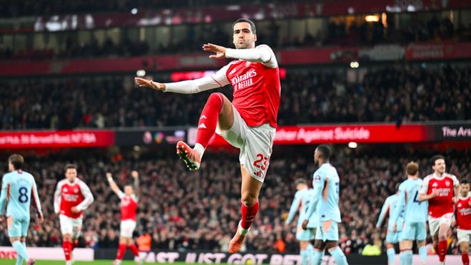 阿森纳首发:1-拉亚、4-本·怀特、3-莫斯克拉(43’12-廷伯)、5-因卡皮耶、33-卡拉菲奥里、41-赖斯(83’14-约克雷斯)、36-苏维门迪、8-厄德高、20-马杜埃凯(61’7-萨卡)、11-马丁内利(61’10-埃泽)、23-梅里诺。