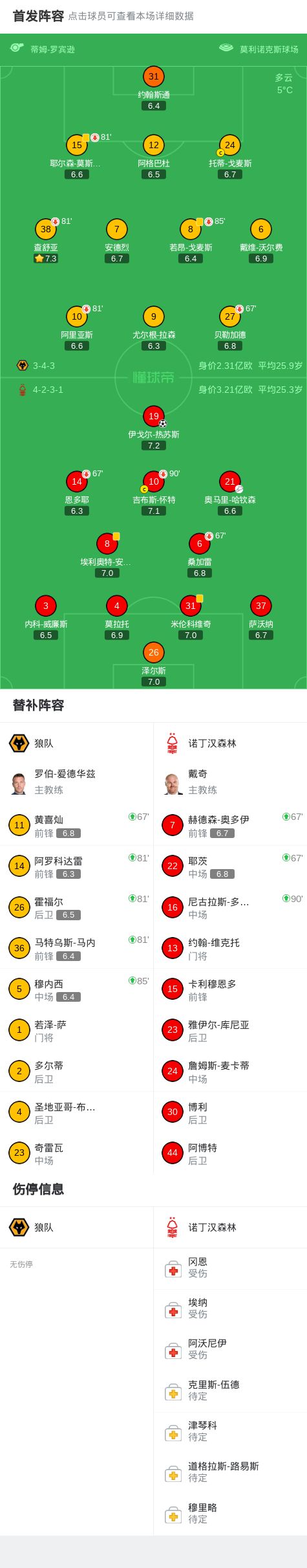 北京时间12月4日,英格兰足球超级联赛第14轮,狼队坐镇主场迎战诺丁汉森林。上半场,伊戈尔-热苏斯进球被吹。下半场,哈钦森助攻,伊戈尔-热苏斯头槌打破僵局。全场比赛结束,狼队0-1不敌森林,狼队英超开局14轮不胜,并且最近各项赛事遭遇8连败。